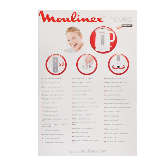 Чайник электрический Moulinex BY282130, пластик, 1.7 л, 2400 Вт, белый
