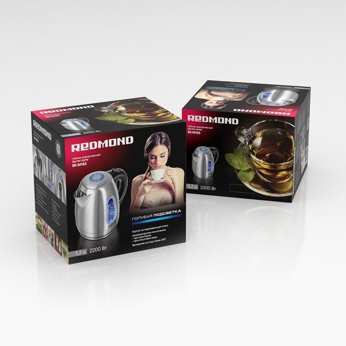 Чайник электрический Redmond RK-M183, металл, 1.7 л, 2200 Вт, подсветка, серебристый