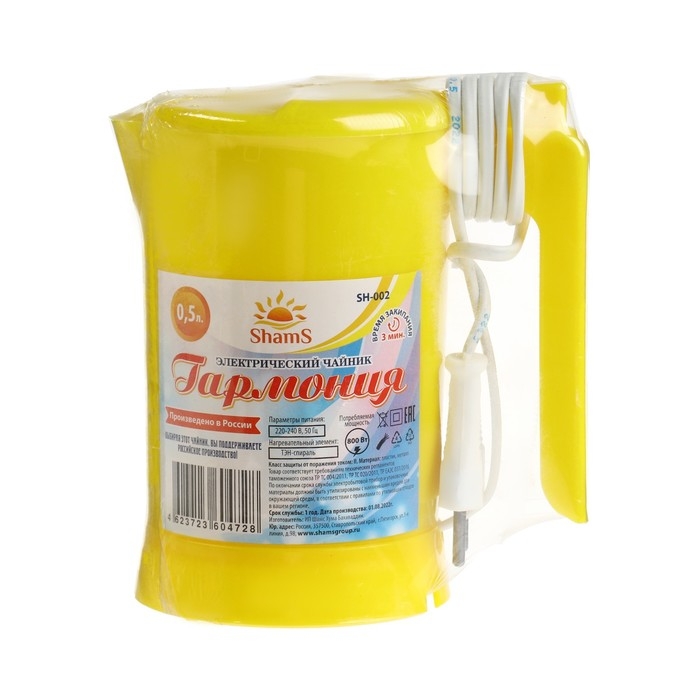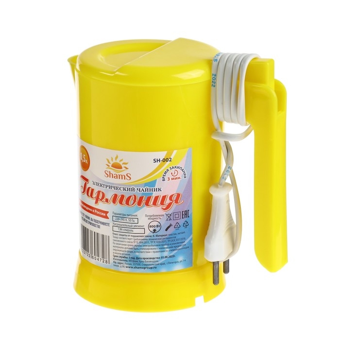 Чайник электрический ShamS SH-002 Гармония, 0.5 л, пластик, 800 Вт, жёлтый