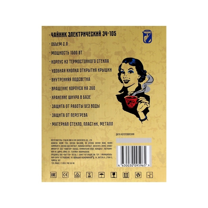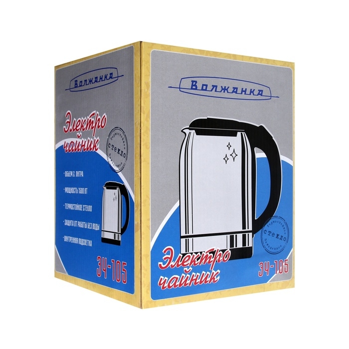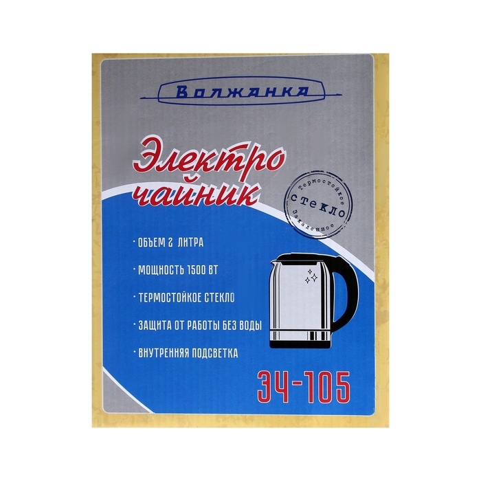 Чайник электрический Волжанка ЭЧ-105, стекло, 2 л, 1500 Вт, чёрный