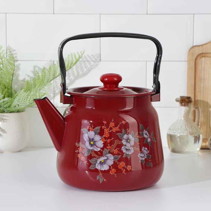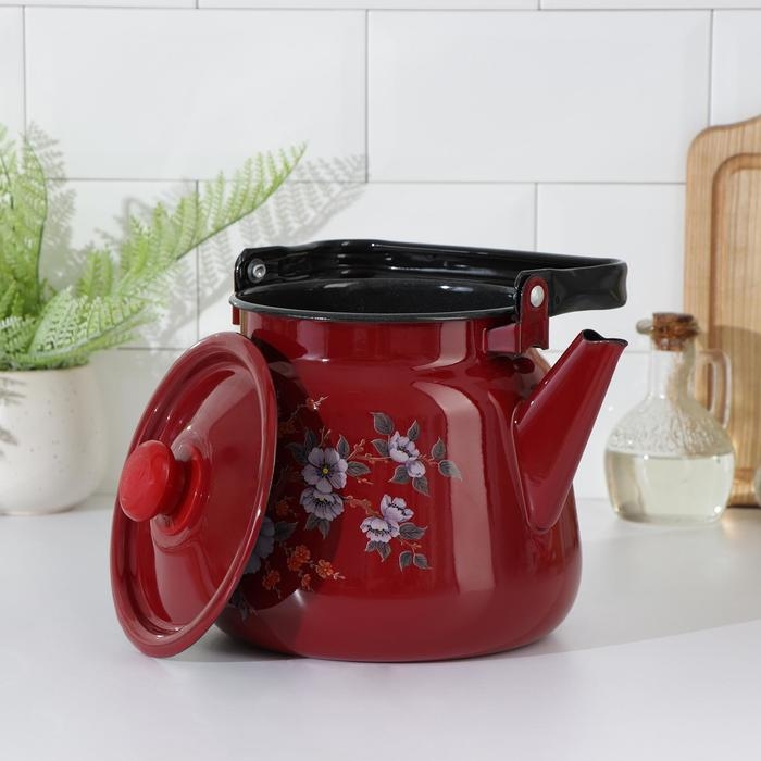 Чайник эмалированный, 3,5 л, цвет вишнёвый