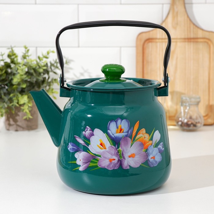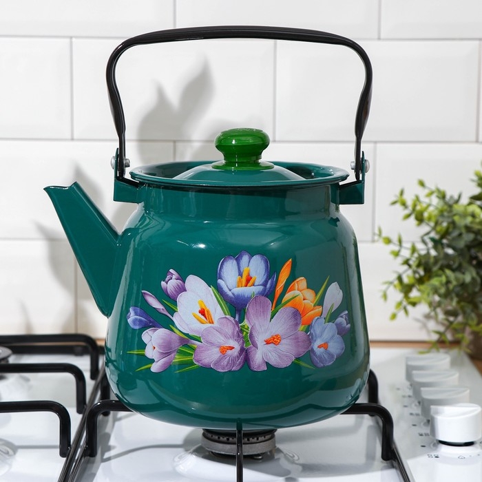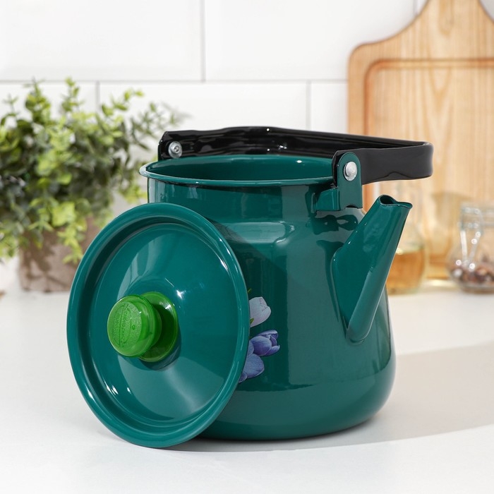 Чайник эмалированный, 3,5 л, с декором МИКС, цвет бирюзовый