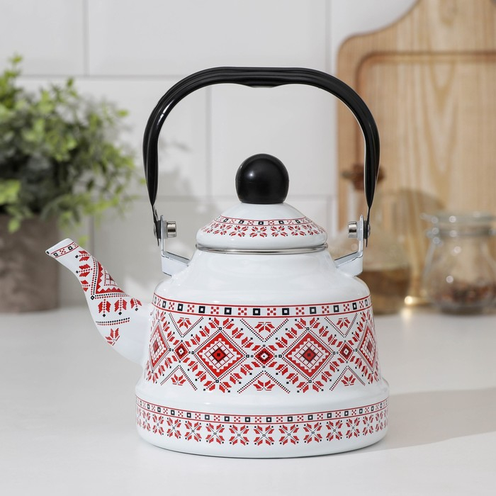 Чайник эмалированный «Рябинушка», 3,5 л, цвет чёрный