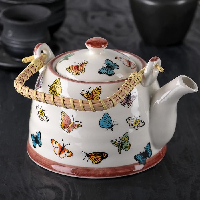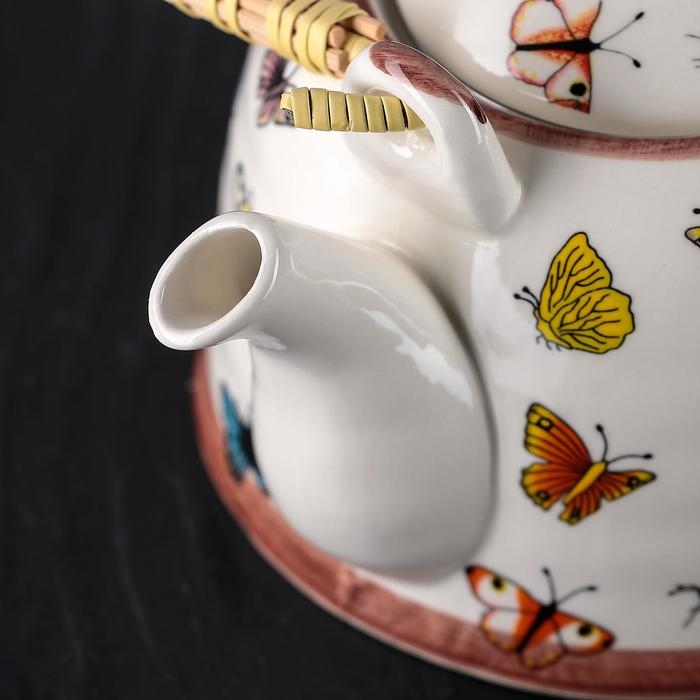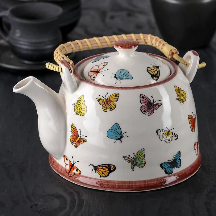 Чайник керамический заварочный с металлическим ситом «Бабочки», 900 мл