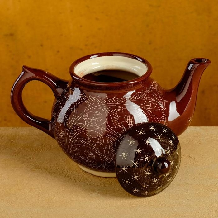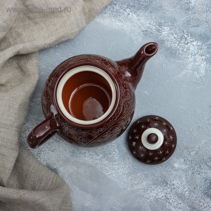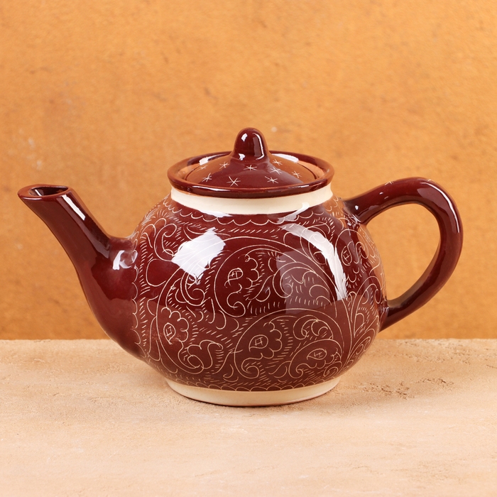 Чайник Риштанская Керамика "Узоры", 700 мл, коричневый