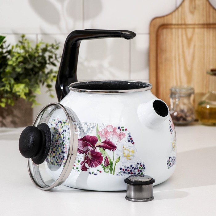 Чайник со свистком «Мозаика», 3 л, фиксированная ручка, индукция, цвет белый