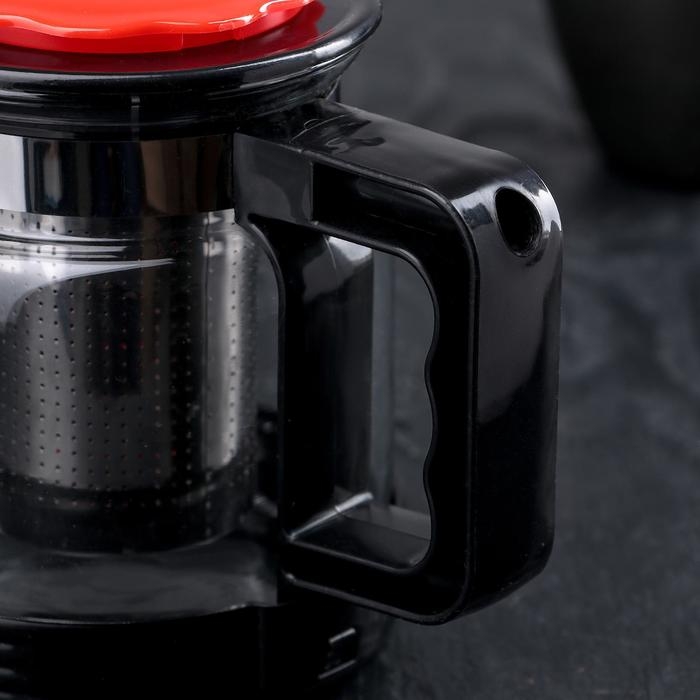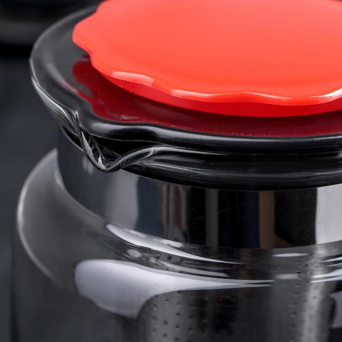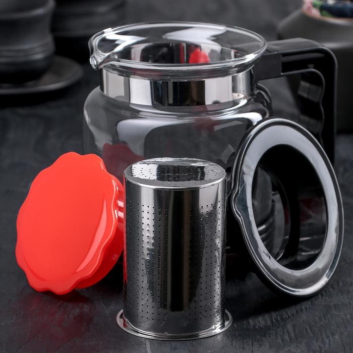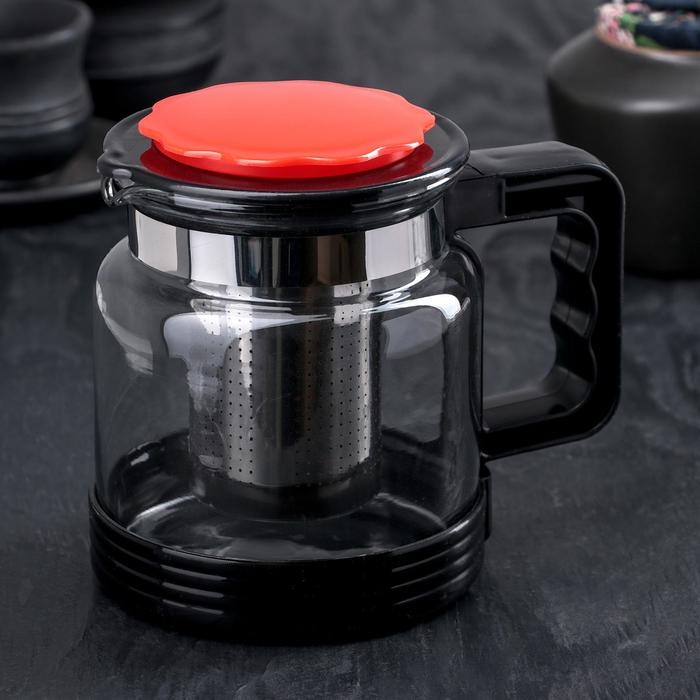 Чайник стеклянный заварочный «Цветок», 750 мл, с металлическим ситом, цвет чёрный