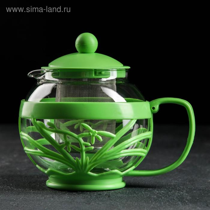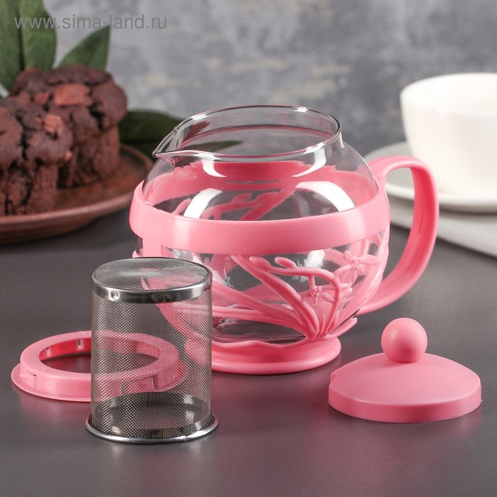 Чайник стеклянный заварочный «Флора», 700 мл, с металлическим ситом, цвет МИКС