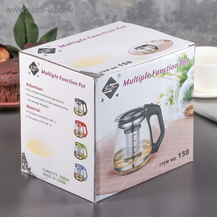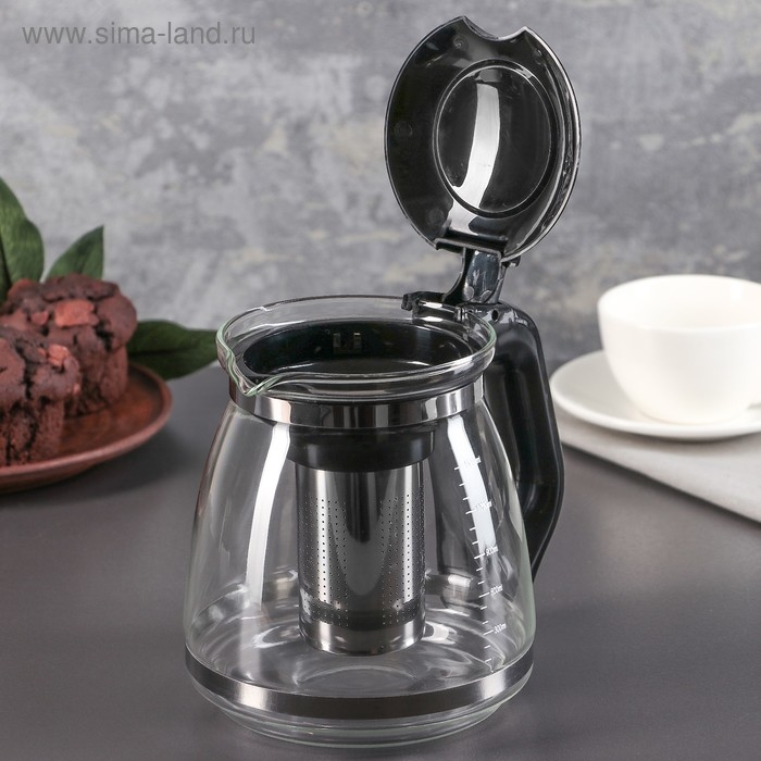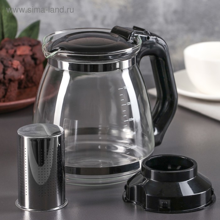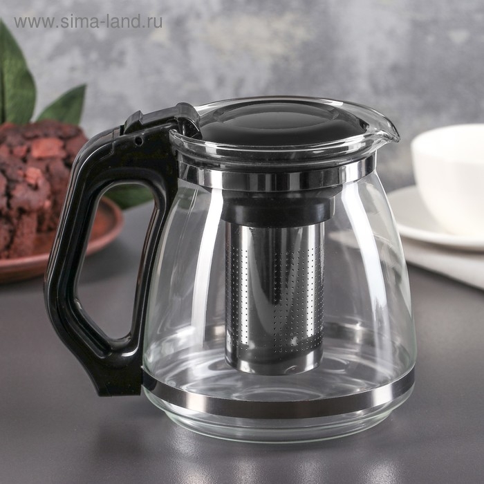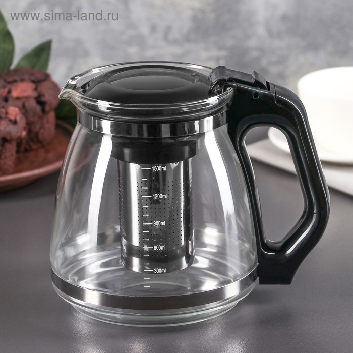 Чайник стеклянный заварочный «Иллюзия», 1,5 л, с металлическим ситом, цвет чёрный
