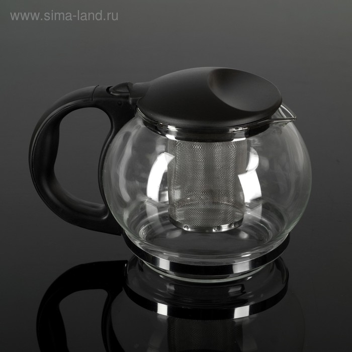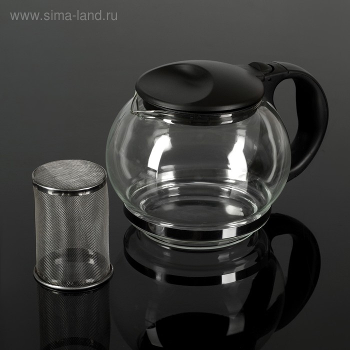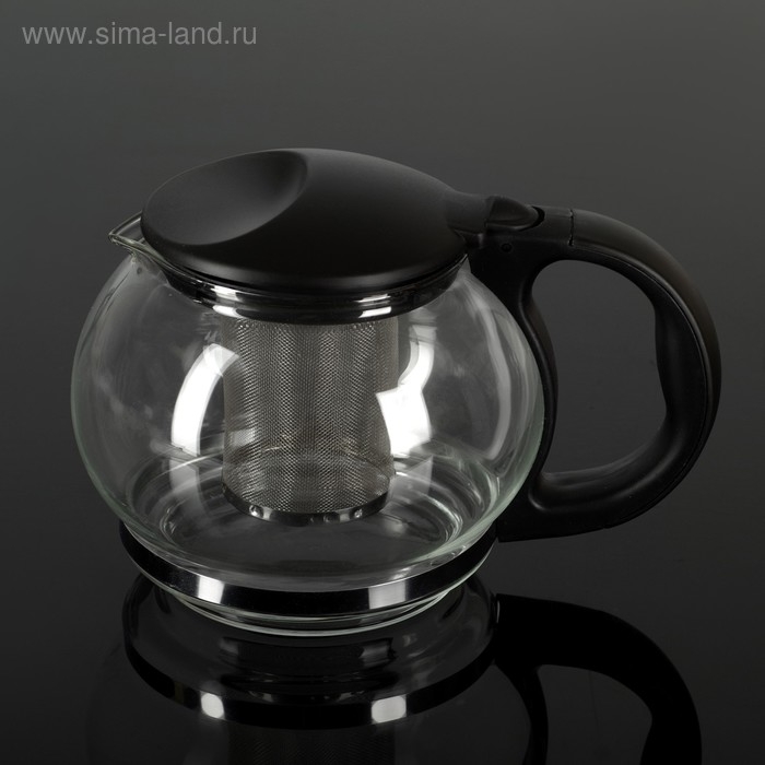 Чайник стеклянный заварочный «Любава», 1,25 л, с металлическим ситом, цвет чёрный