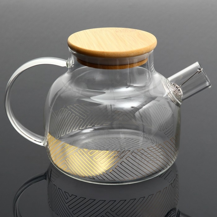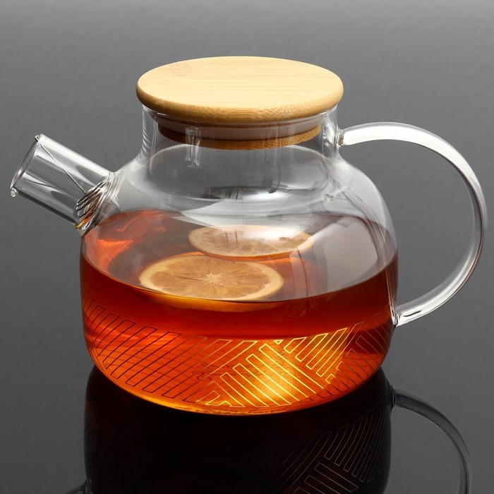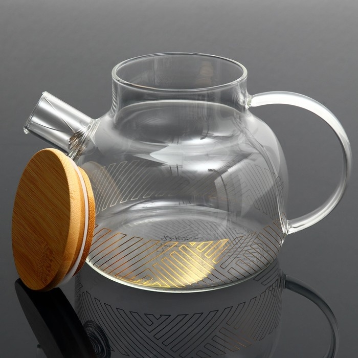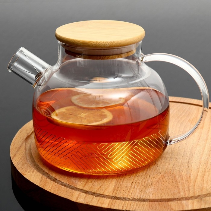 Чайник стеклянный заварочный с бамбуковой крышкой «Геометрия», 1000 мл