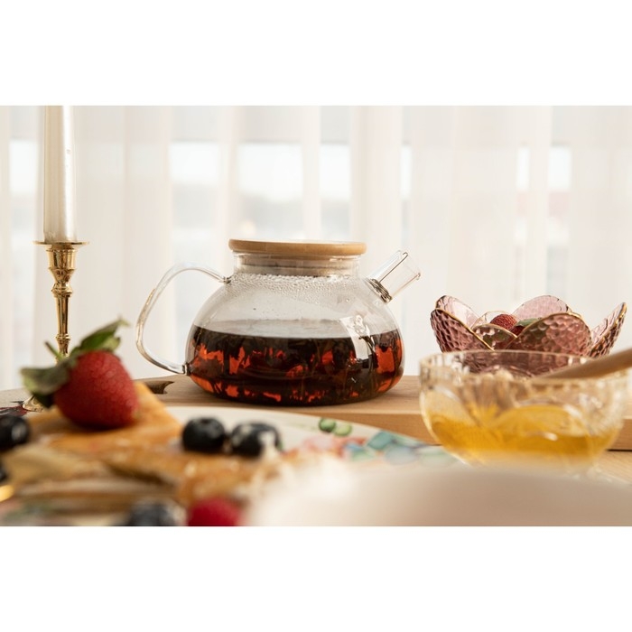 Чайник заварочный стеклянный с бамбуковой крышкой и металлическим фильтром BellaTenero «Эко», 1,2 л