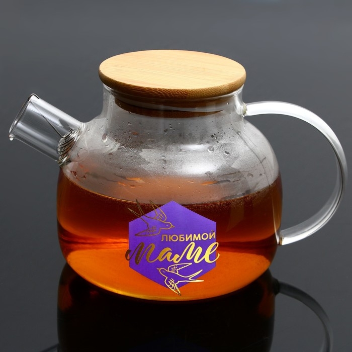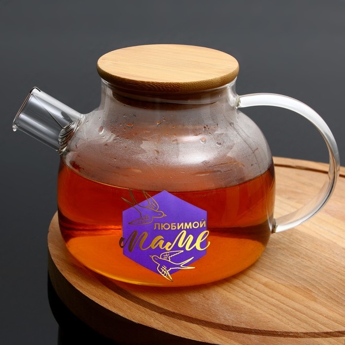Чайник стеклянный заварочный с бамбуковой крышкой «Маме», 1000 мл