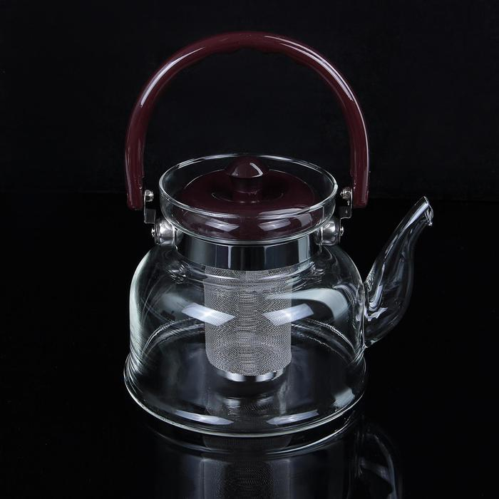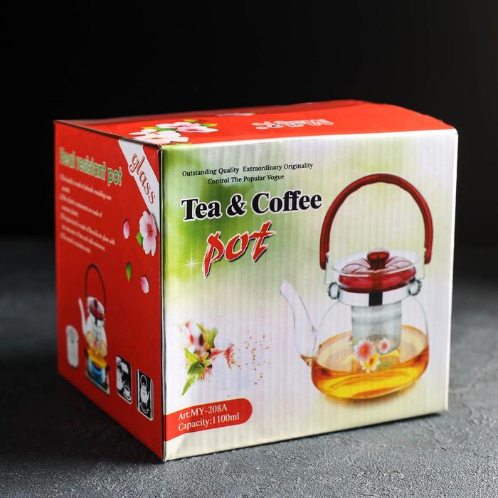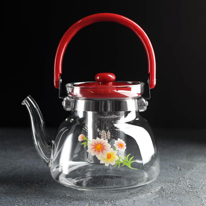 Чайник стеклянный заварочный с металлическим ситом «Цветочная фантазия», 1 л