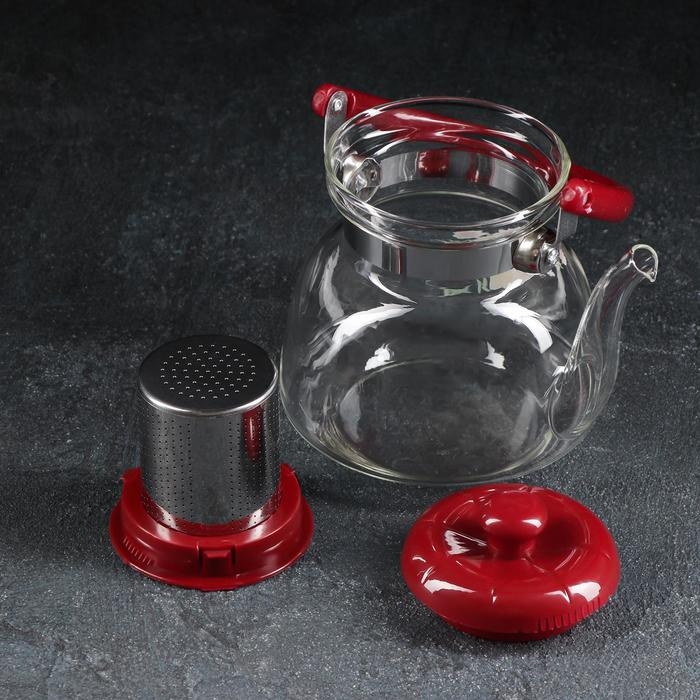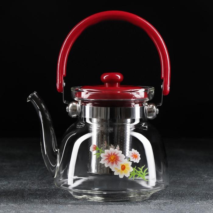 Чайник стеклянный заварочный с металлическим ситом «Цветочная фантазия», 850 мл