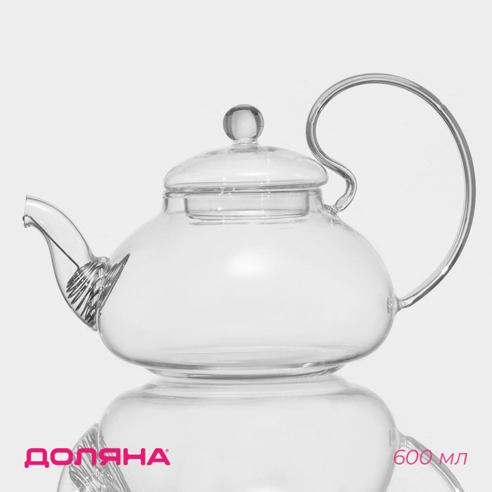 Чайник стеклянный заварочный с металлическим ситом Доляна «Элегия», 600 мл