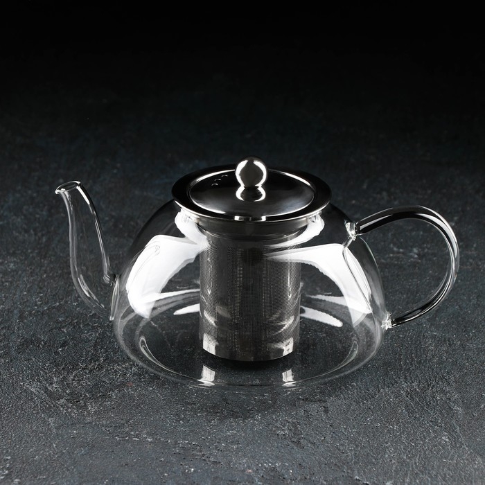 Чайник стеклянный заварочный с металлическим ситом «Жак», 1 л, 21×14×11 см