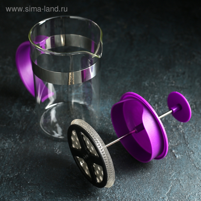 Чайник заварочный френч - пресс Доляна «Комплимент», 350 мл, стекло, цвет фиолетовый
