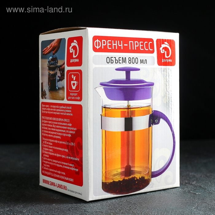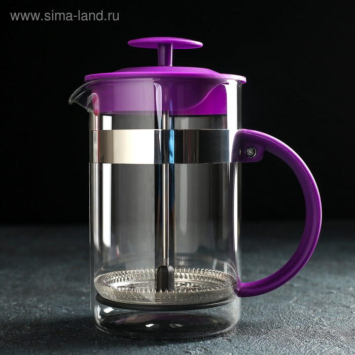 Чайник заварочный френч - пресс Доляна «Гарсон», 800 мл, стекло, цвет фиолетовый