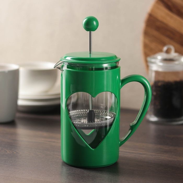 Заварочный чайник френч-пресс Доляна «Гарсон», 350 мл, стекло, зелёный
