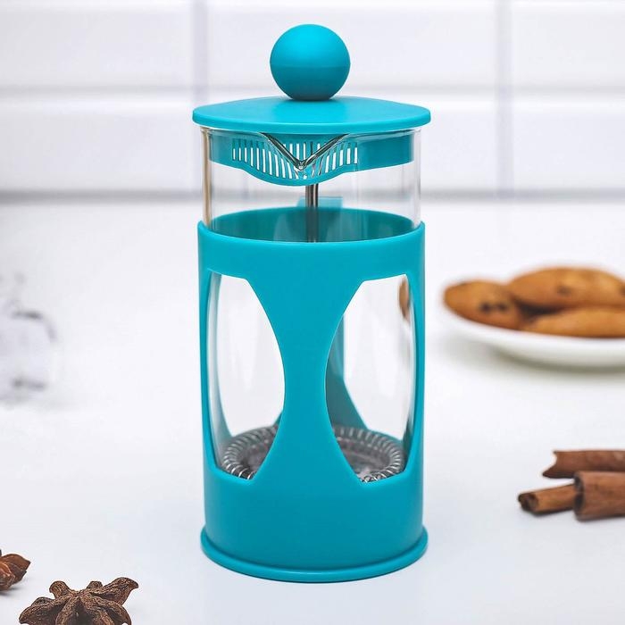 Чайник заварочный френч - пресс Доляна «Комплимент», 350 мл, стекло, цвет бирюзовый