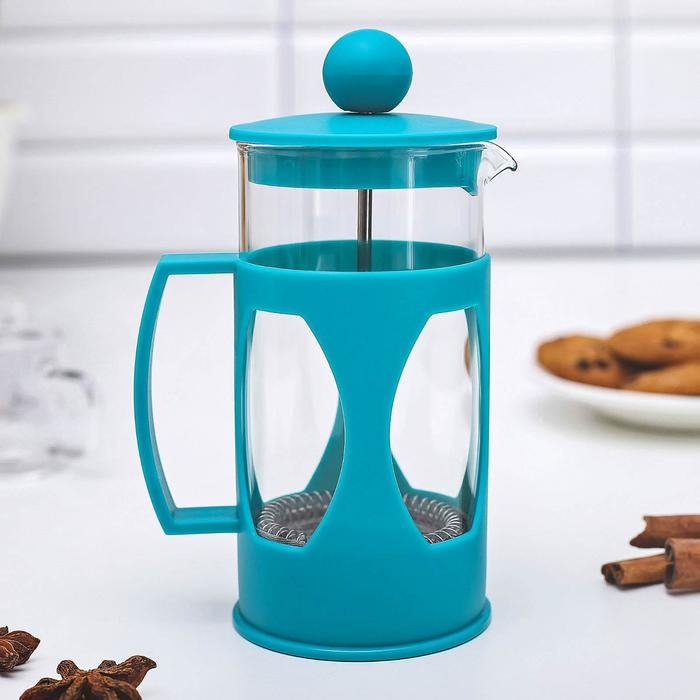 Чайник заварочный френч - пресс Доляна «Оливер», 350 мл, стекло, цвет бирюзовый