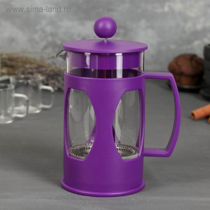 Чайник заварочный френч - пресс Доляна «Комплимент», 350 мл, стекло, цвет фиолетовый