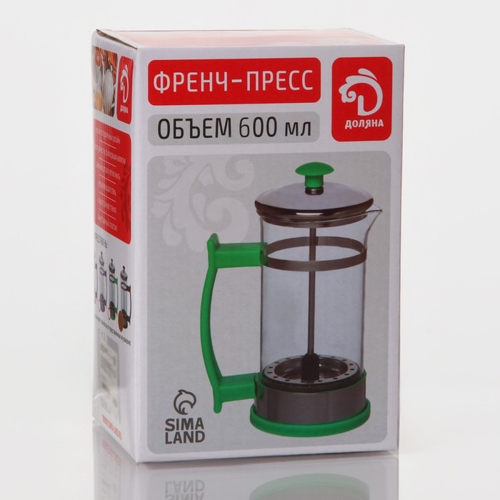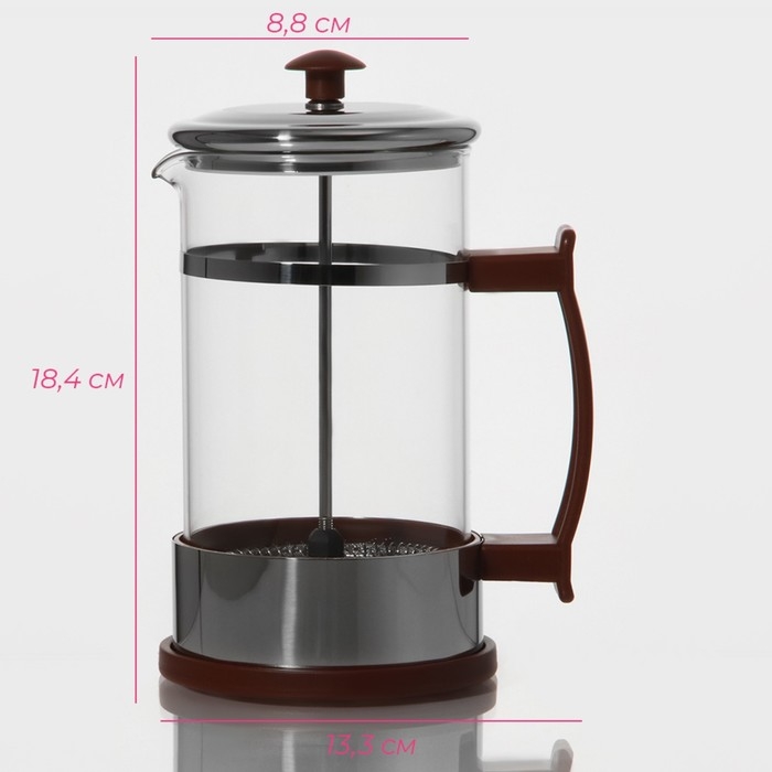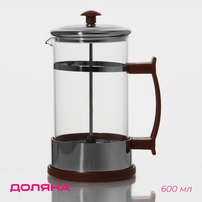 Чайник заварочный френч - пресс Доляна «Риц», 600 мл, стекло, цвет коричневый