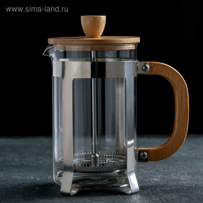 Стеклянный френч-пресс хорошо держит тепло, раскрывает вкус любимых напитков. Стальной поршень не вступает в реакцию с жидкостью, не наделяет ее металлическим привкусом.Принцип работы френч-пресса прост: