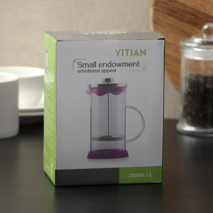 Чайник заварочный френч - пресс Доляна «Комплимент», 350 мл, стекло, цвет фиолетовый