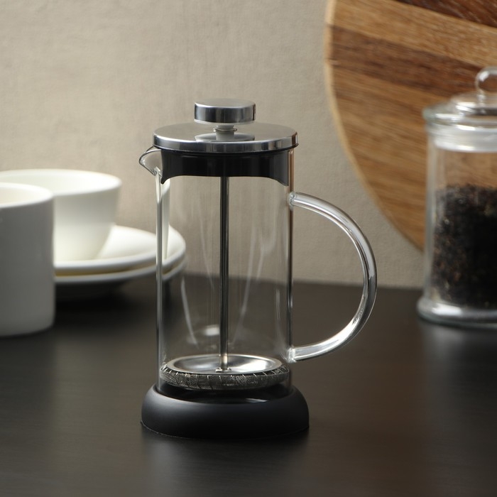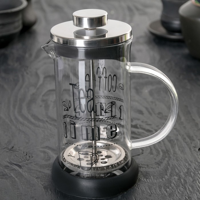 Чайник заварочный френч - пресс «Келли», 350 мл, стекло, цвет чёрный, рисунок МИКС