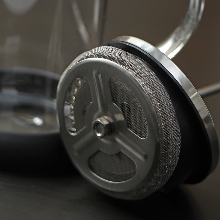 Стеклянный френч-пресс хорошо держит тепло, раскрывает вкус любимых напитков. Стальной поршень не вступает в реакцию с жидкостью, не наделяет ее металлическим привкусом.Принцип работы френч-пресса прост: