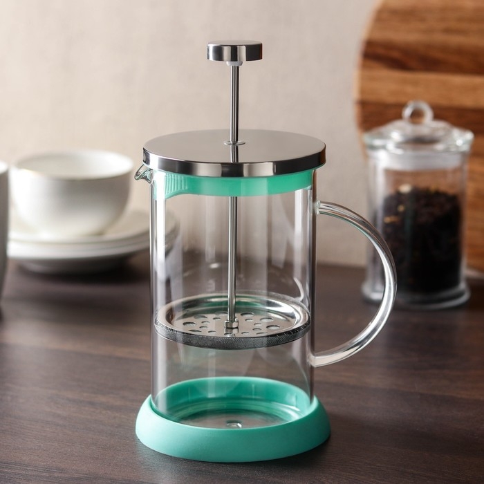 Заварочный чайник френч-пресс Доляна «Гарсон», 350 мл, стекло, зелёный