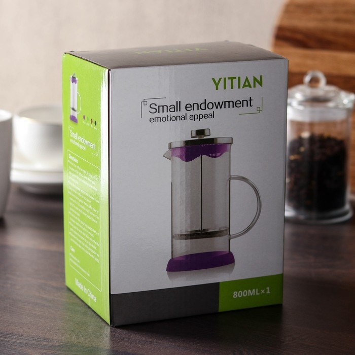 Чайник заварочный френч - пресс Доляна «Комплимент», 350 мл, стекло, цвет фиолетовый