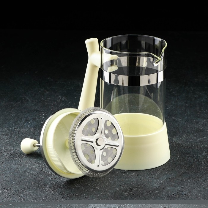 Чайник заварочный френч - пресс Доляна «Классика», 350 мл, стекло, цвет молочный
