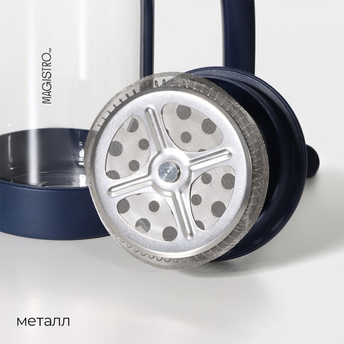 Чайник заварочный френч - пресс Magistro «Хельсинки», 600 мл, стекло, цвет тёмно-синий