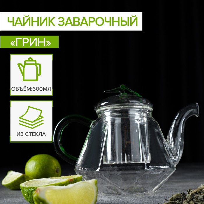 Чайник заварочный со стеклянным ситом «Грин», 600 мл