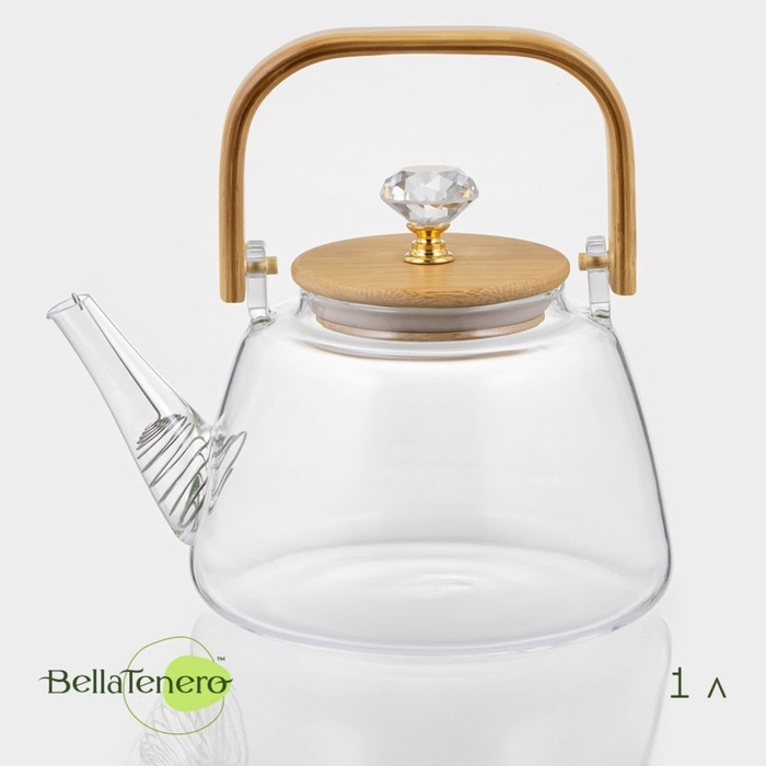 Чайник заварочный стеклянный с металлическим ситом BellaTenero «Эко. Бриллиант», 1 л, 17×15×19 см