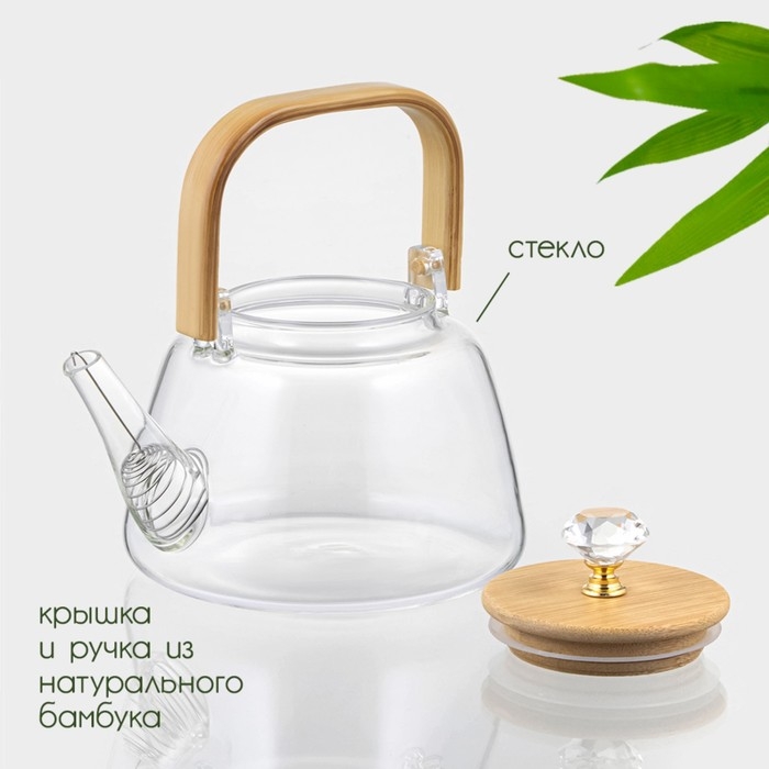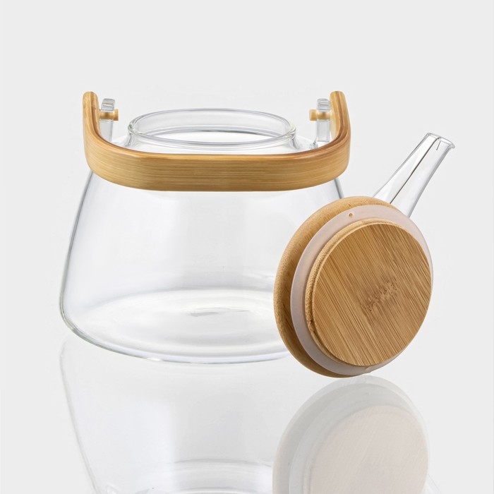 Чайник заварочный стеклянный с бамбуковой крышкой и металлическим фильтром BellaTenero «Эко», 1,2 л