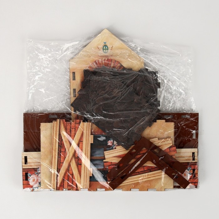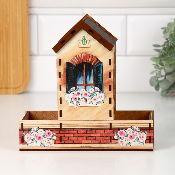 Домик выполнен из материала ХДФ, а красочность рисунка задаётся благодаря оклейке полиграфией.