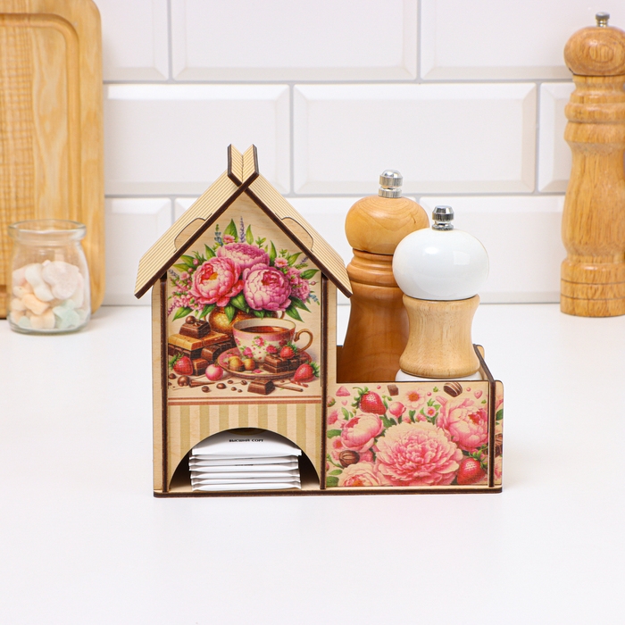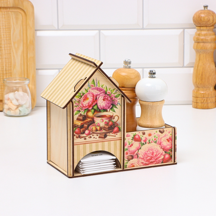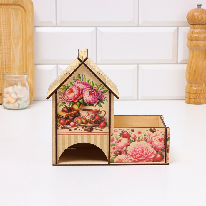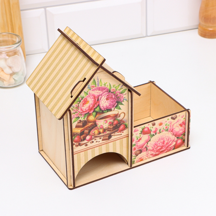 Чайный домик с конфетницей "Пионы", 18 х 10 х 16,5см