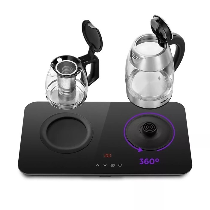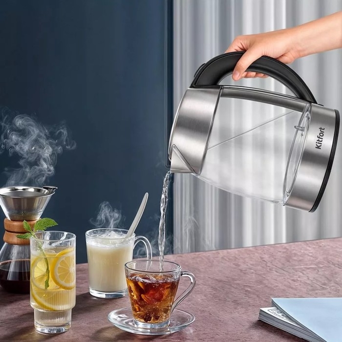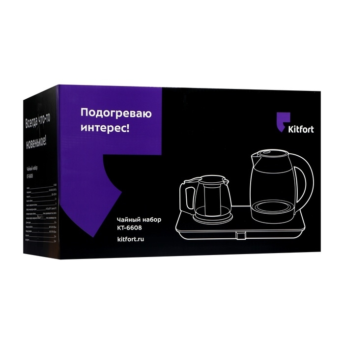 Чайный набор Kitfort КТ-6608, стекло, 1.7/1 л, 2200 Вт, регулировка t°, дисплей, чёрный