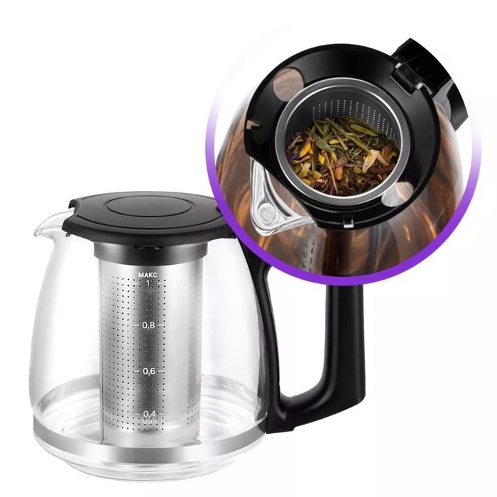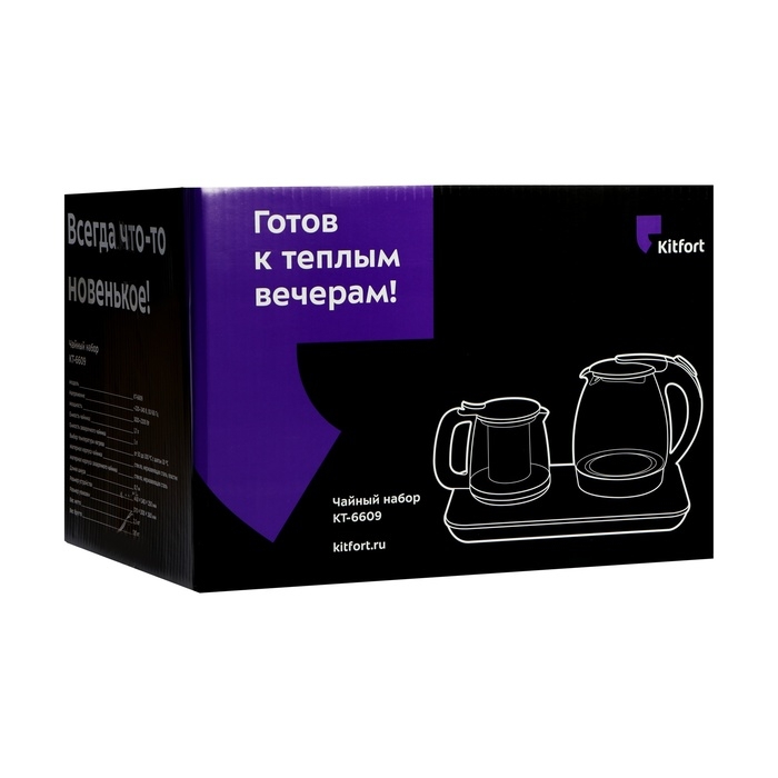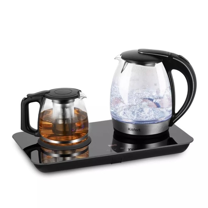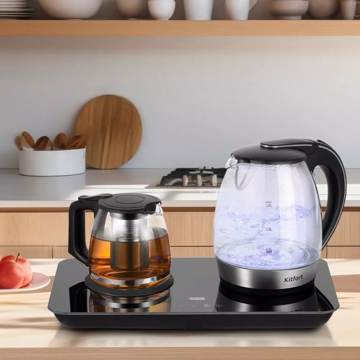 Чайный набор Kitfort КТ-6609, стекло, 1.7/1 л, 2200 Вт, регулировка t°, дисплей, чёрный