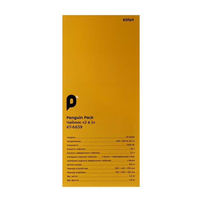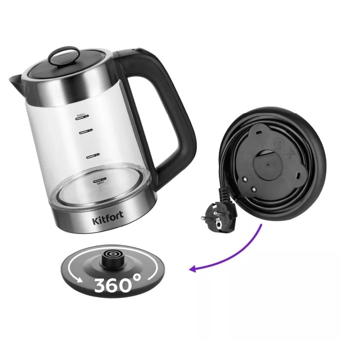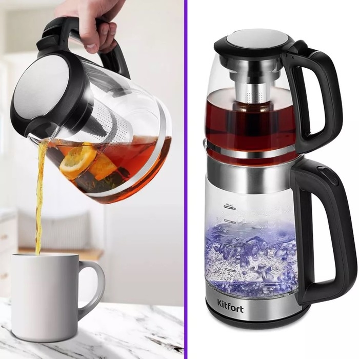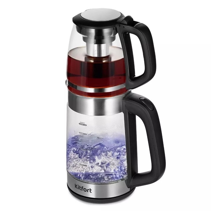 Чайный набор Kitfort КТ-6639, стекло, 1.8/1.2 л, 1500 Вт, чёрно-серебристый
