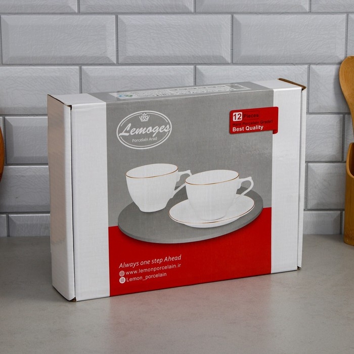 Чайный набор «Лимон», 12 предметов, 6 чашек 200 мл, фарфор, Иран