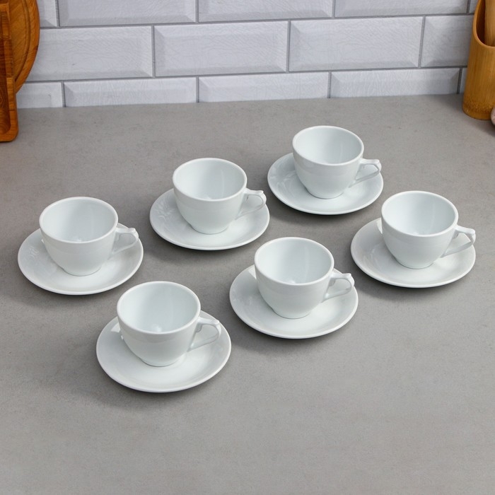 Чайный стеклянный набор «Грация», 12 предметов: кружка 250 мл, 6 шт, блюдце, 6 шт