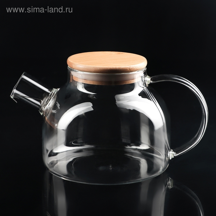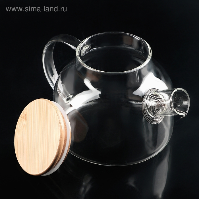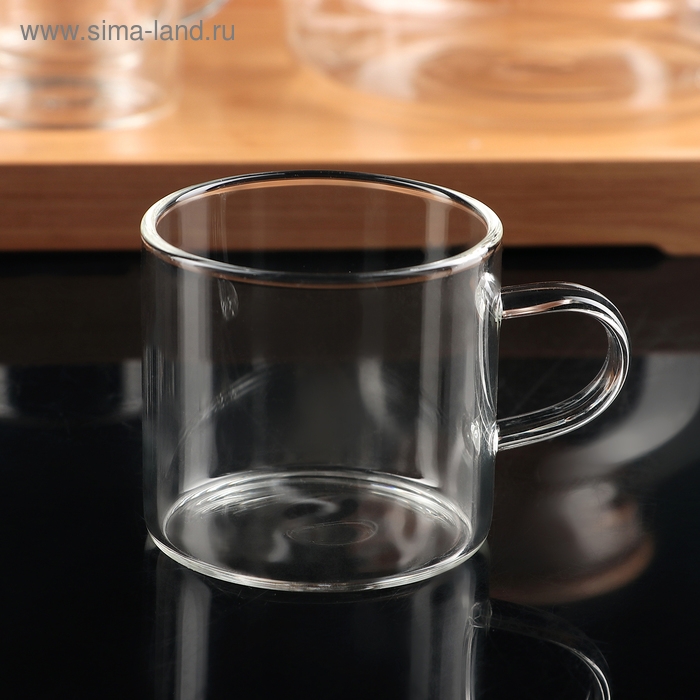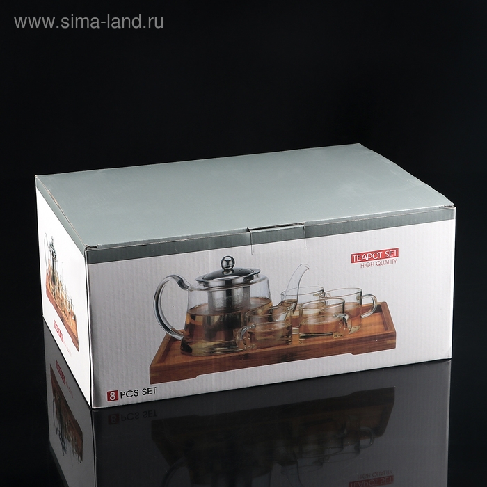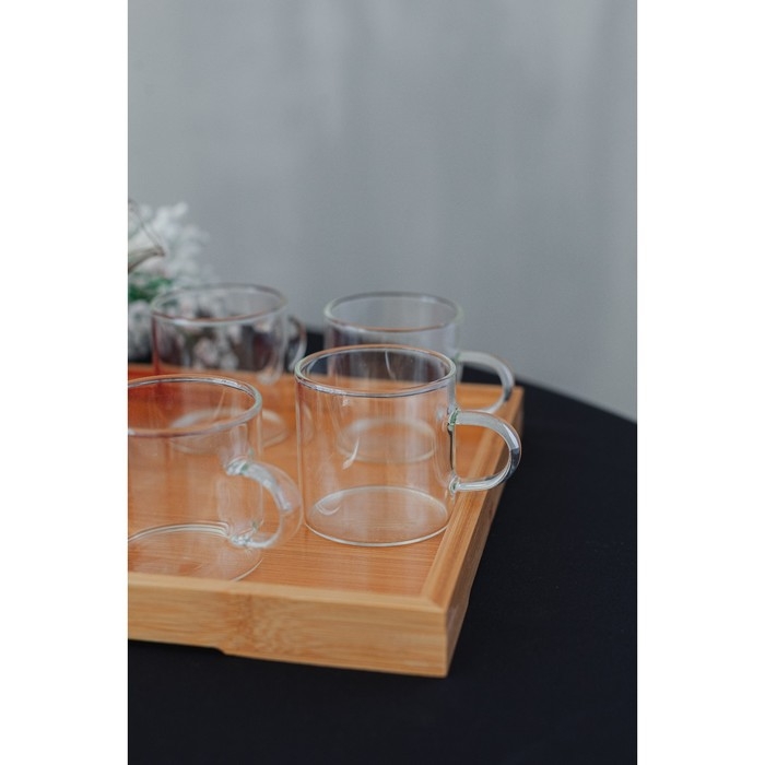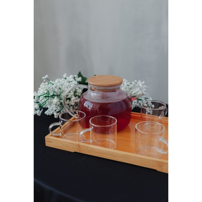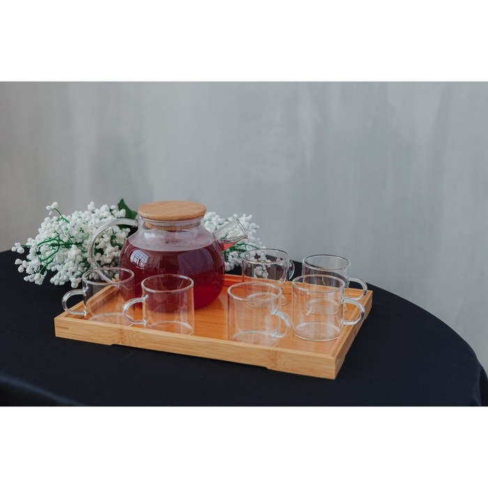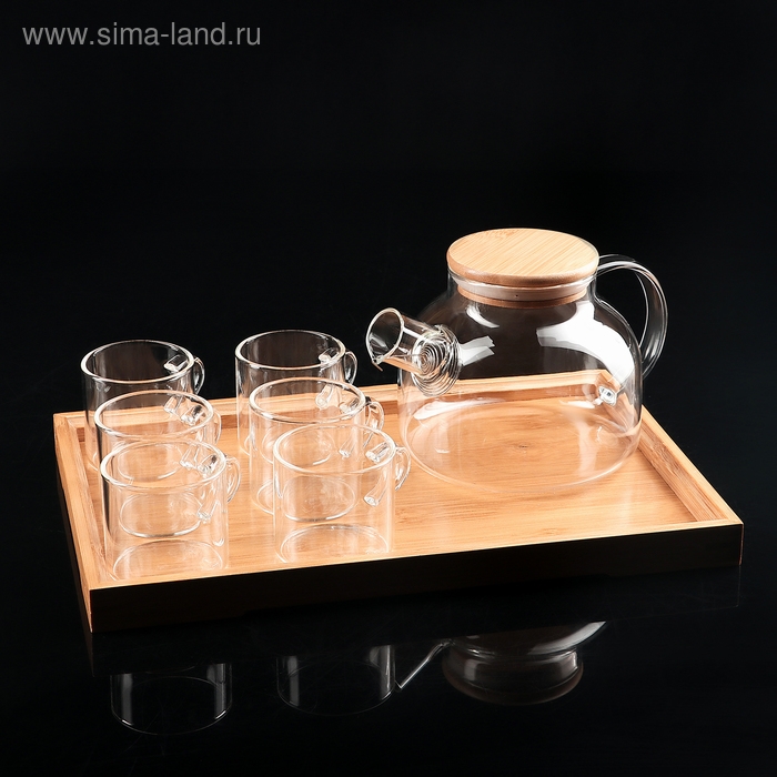 Чайный набор на деревянной подставке «Эко», 7 предметов: чайник стеклянный с ситом 900 мл, кружки 6 шт, 100 мл