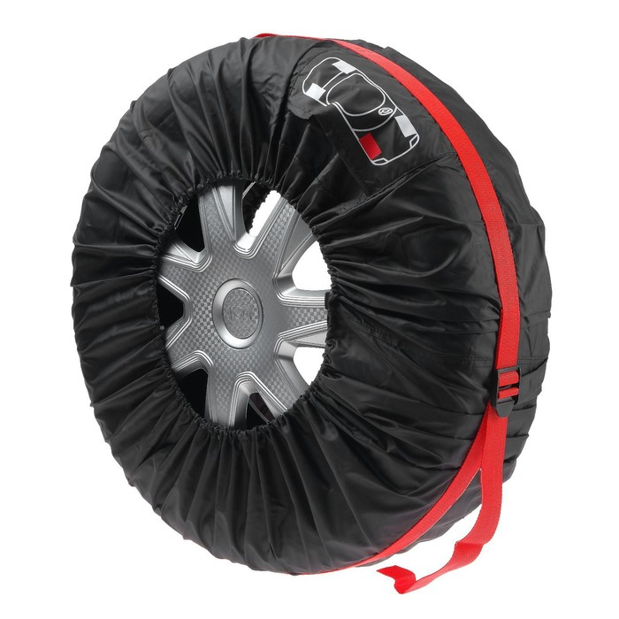 Набор чехлов на автомобильные колеса предназначен для хранения и транспортировки автомобильных колёс. Они предохраняют от пыли и царапин салон автомобиля или багажник. Чехол для шин регулируется с помощью застежки, легко и быстро надевается, снимается и легко складывается.