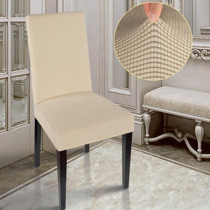 Чехол на стул Комфорт трикотаж жаккард, цвет кремовый, 100% полиэстер