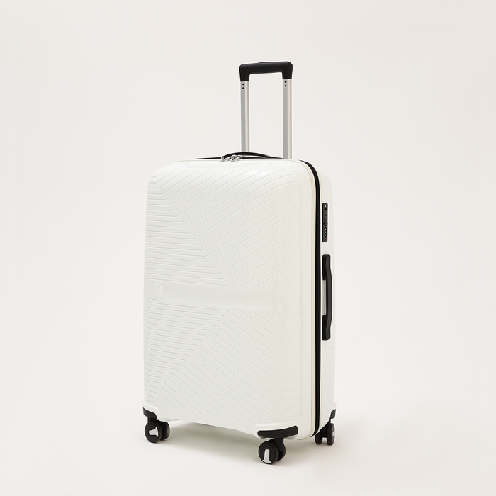 Чемодан большой 100 л (L), отдел на молнии, кодовый замок, 4 колеса, цвет белый